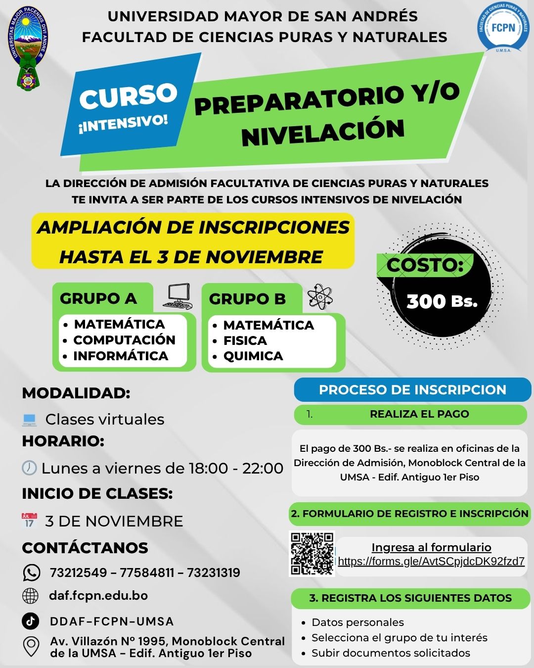 INSCRIBETE YA al Curso Preparatorio y/o de Nivelación de la Facultad de Ciencias Puras y Naturales – UMSA!
