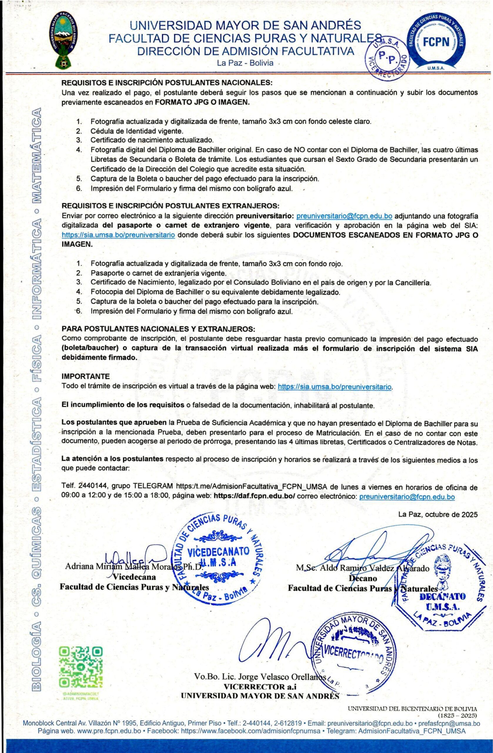 La Facultad de Ciencias Puras y Naturales invita a todos los bachilleres a postular a las siguientes carreras: